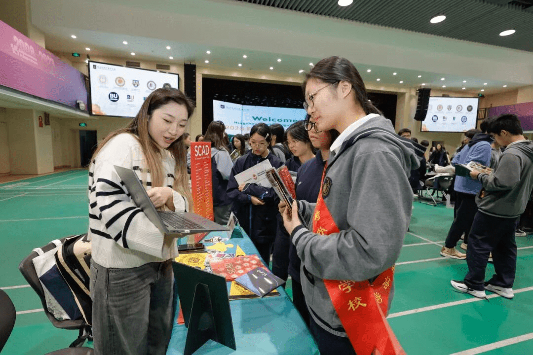 展会现场,学生们积极与各国高校代表交流,从课程设置、职业发展到校园文化、生活日常,展开了广泛而深入的对话。一位招生官感慨道:“英特的学生不仅有学术的底气,更有表达的自信。”