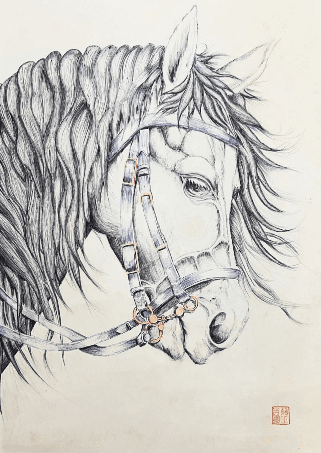 初一1班 詹望舒《彩云追月 骏马迎新》