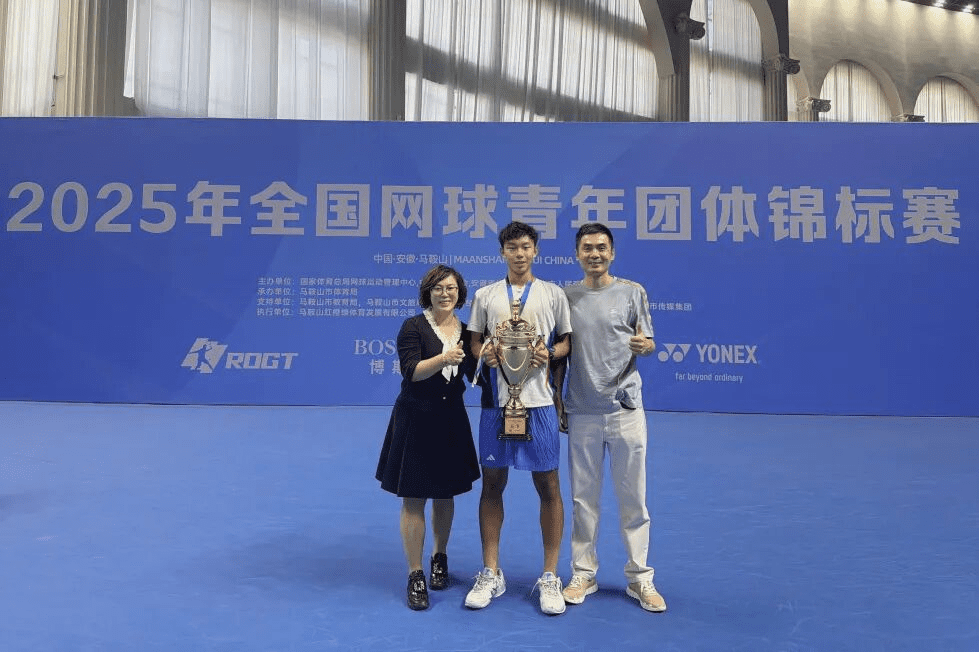 本次全国网球青年团体锦标赛由国家体育总局网球运动管理中心、中国网球协会主办,是汇聚全国最优秀青年网球力量的顶级赛事,吸引了全国各地60余支强劲队伍同台竞技。赛场上,周敬轩同学与队友以扎实的技术功底、稳定的心态和顽强的拼搏精神,一路过关斩将,最终站上最高领奖台,将冠军奖杯收入囊中。