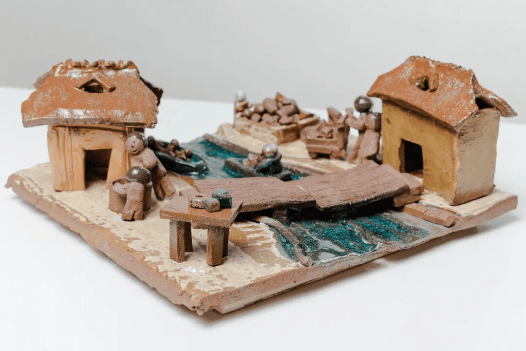 获奖作品《指尖良渚》中,学生从良渚文化的王城建造、水文地貌等地域文化资源中汲取灵感,结合陶艺创作的塑形、釉色与烧制技艺,呈现出既具古韵又富有当代审美的雕塑语言。作品不仅在形式上展现出手工制作的精微与创意,更在内涵上传递出对本土文化传承的思考与探索,体现出学生扎实的艺术素养和深厚的文化理解。