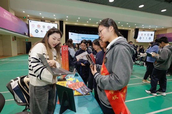 On November 3, Hangzhou Entel Foreign Language School hosted its first Overseas University Fair of the semester, welcoming representatives from 43 universities across the US, UK, Japan, Singapore, and Spain. Notable schools included University of Rochester, UC Santa Barbara, Northeastern University, and Loughborough University. The fair featured interactive booths and a guest forum on global higher education, where admissions officers shared insights on fit, growth, and application tips. Students engaged in in-depth cultural exchanges, gaining a clearer vision of their future study paths and limitless possibilities.